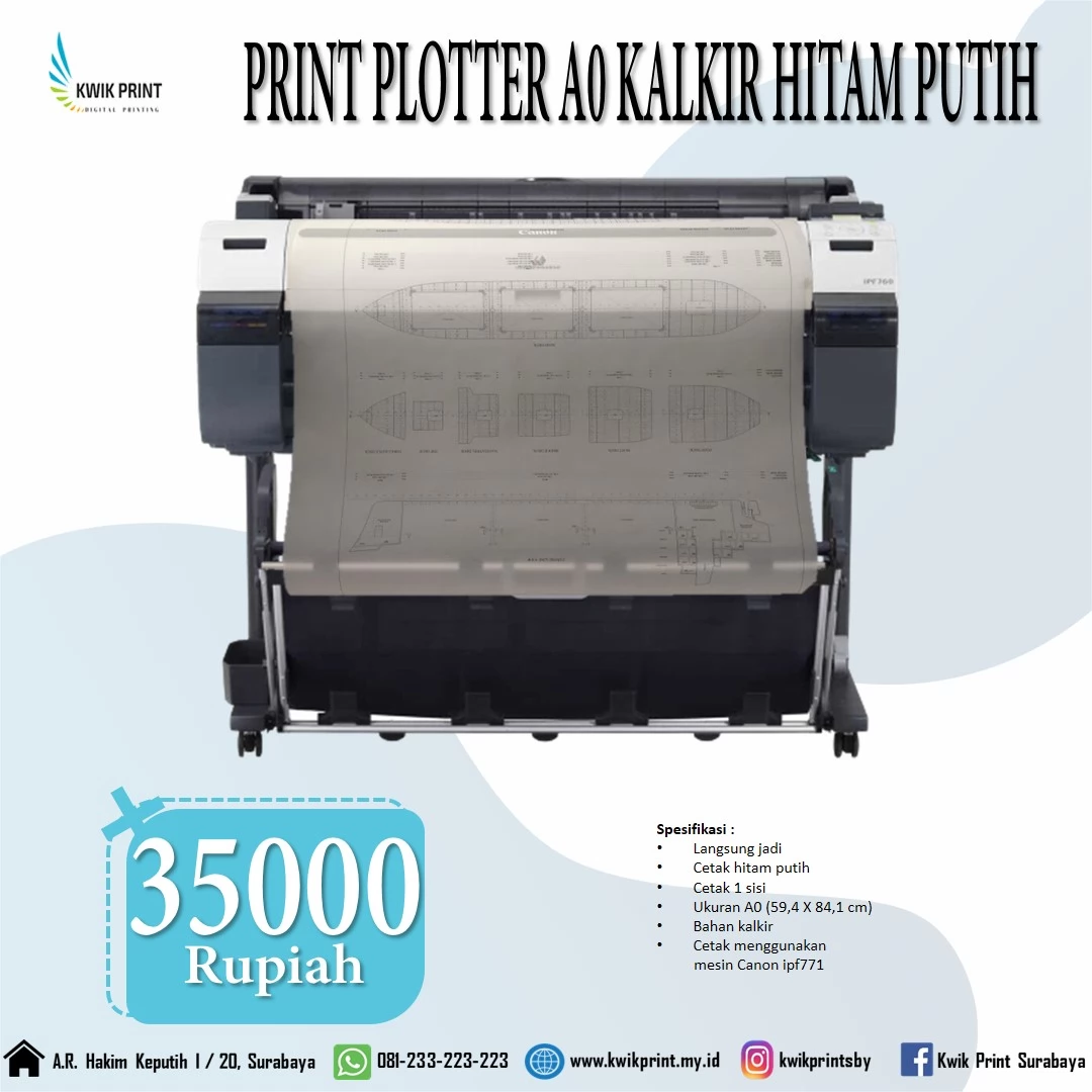 Baca juga: Harga Print Plotter HVS A1 KirimKe Surabaya 081 233 223 223 (Tercepat dan termurah) Print atau cetak hvs plotter, Kalkir, glossy, matte digital di Kwikprint.my.id Surabaya segala ukuran A0 A1 A2 A3. Kwikprintsurabaya.com ialah unit usaha jasa yang menyediakan kebutuhan digital printing. Dengan spesifikasi teknologi mesin cetak kinerja karyawan yang profesional yang |